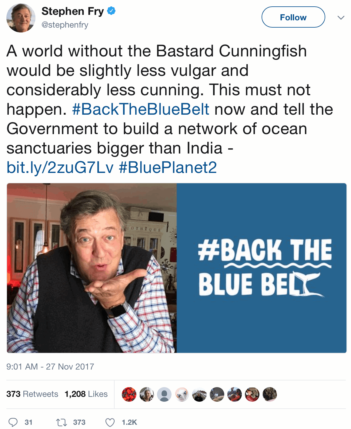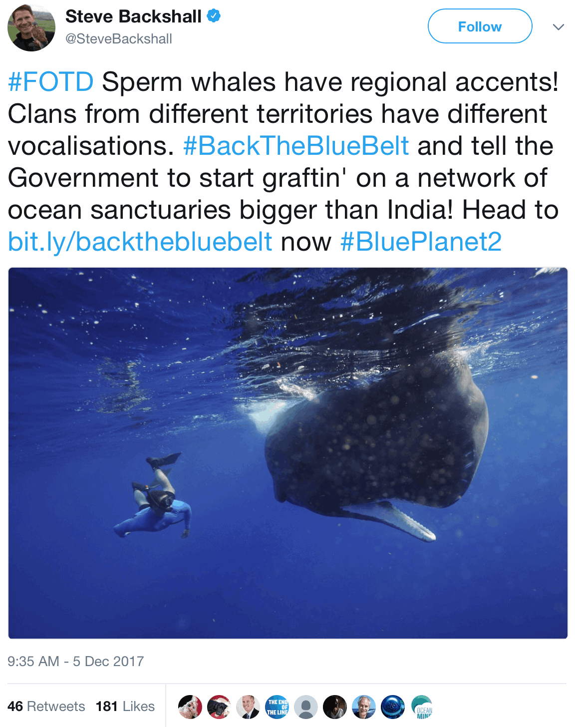 As Blue Planet II drew to its emotive close last night, a host of famous faces joined forces with the marine conservation community to #BackTheBlueBelt – a network of ocean sanctuaries the size of India.
